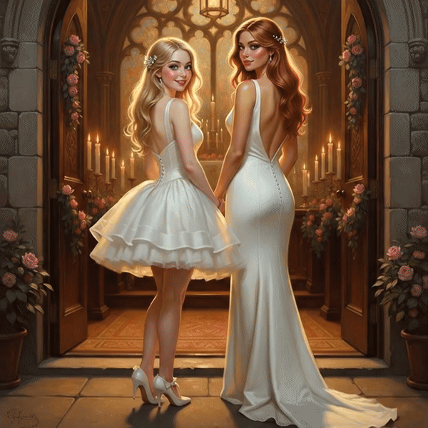 The music started. They walked down the short aisle side by side, not willing to be separated even for tradition's sake. Both in white. Both smiling. Both choosing each other with every step.