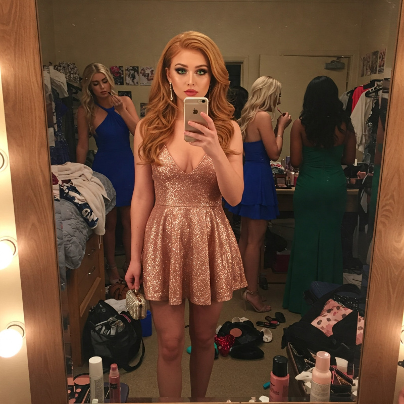 Each girl took her turn in front of the mirror, adjusting final details of their outfits and taking countless photos of each other. Logan participated in the ritual, helping Madison secure a loose strand of hair and assisting Tiffany with a stubborn necklace clasp.