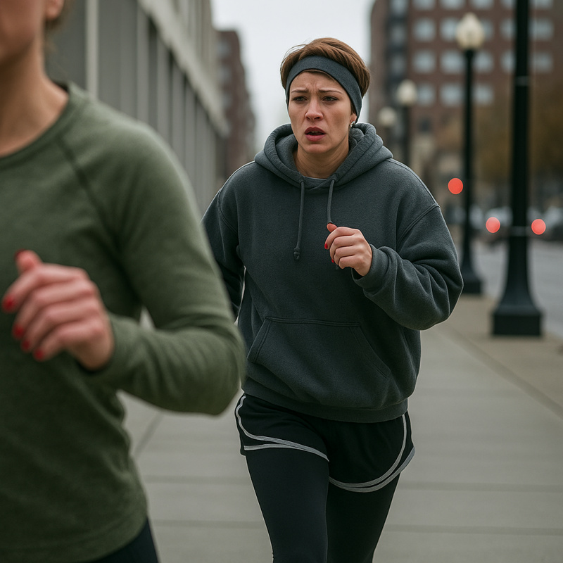 One week later, I stood in Casey's kitchen at 7 AM, still catching my breath from my first mandatory morning run. Sweat darkened my gray hoodie, and the running shorts with white trim clung uncomfortably to legs that hadn't run anywhere in years. Underneath, the running tights Casey had insisted on-"You can't wear sweatpants in public, Evan, you'll overheat"-felt like a second skin, clinging to every muscle. I could feel my hair, too short for a ponytail but long enough to look disheveled, sticking to my forehead despite the sweatband Casey had given me.